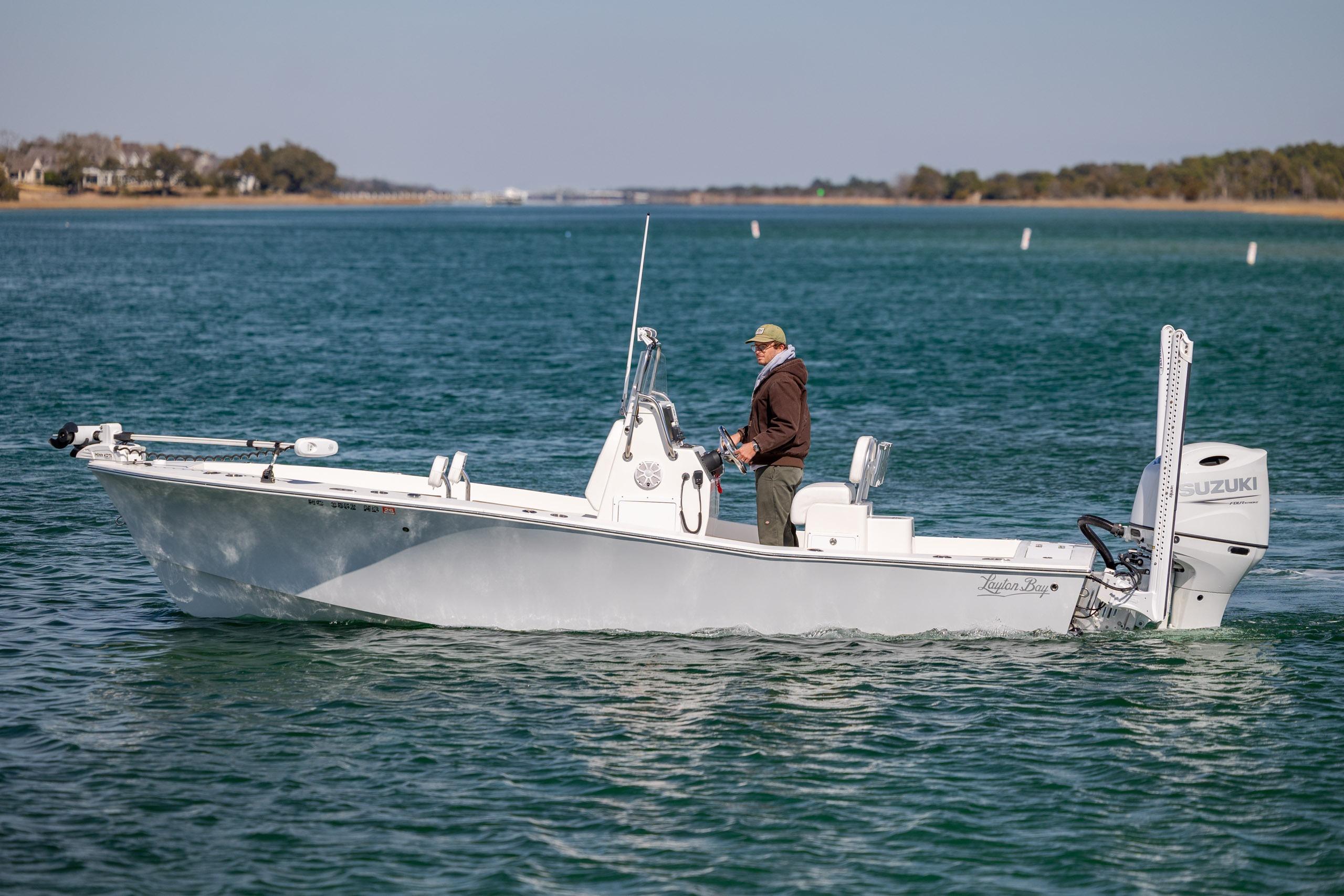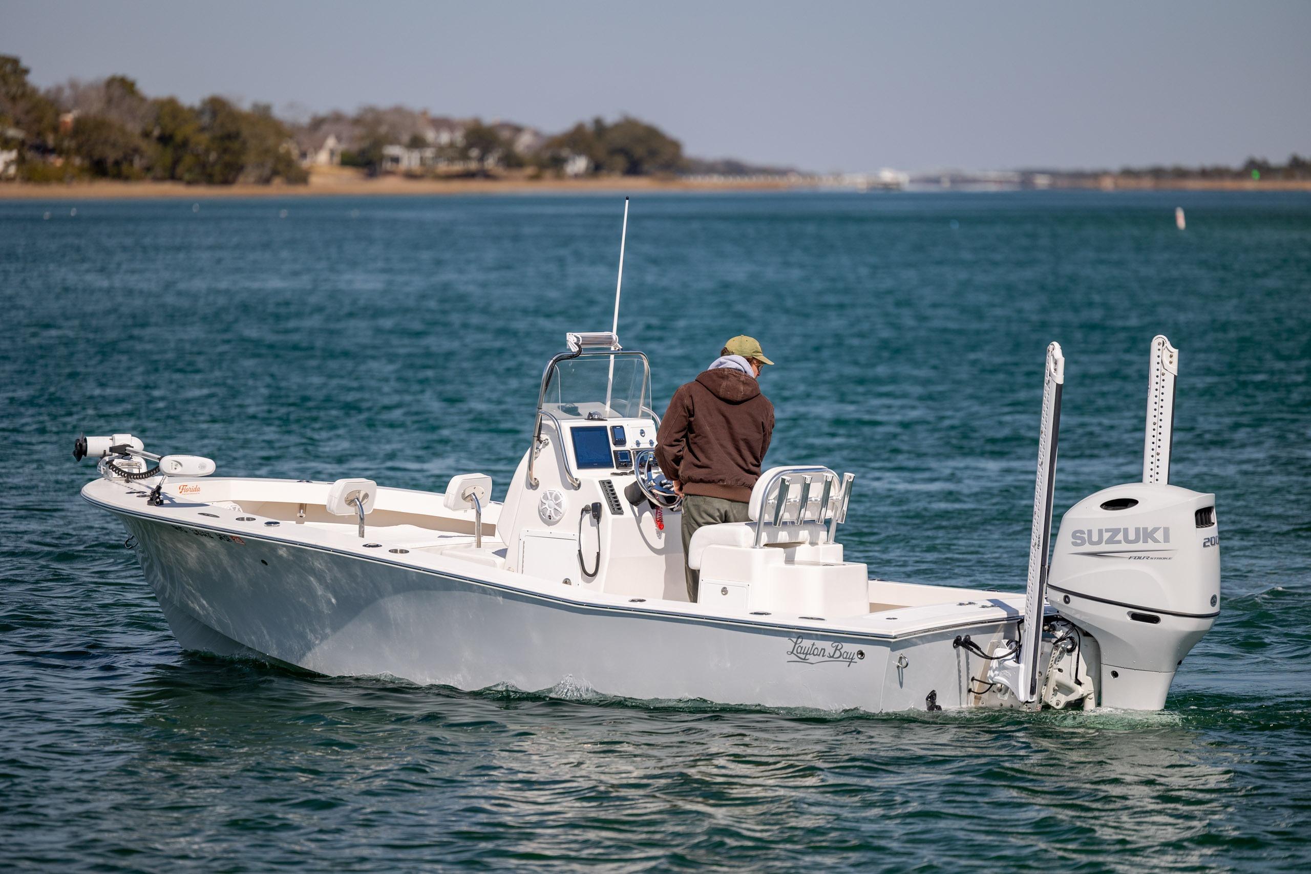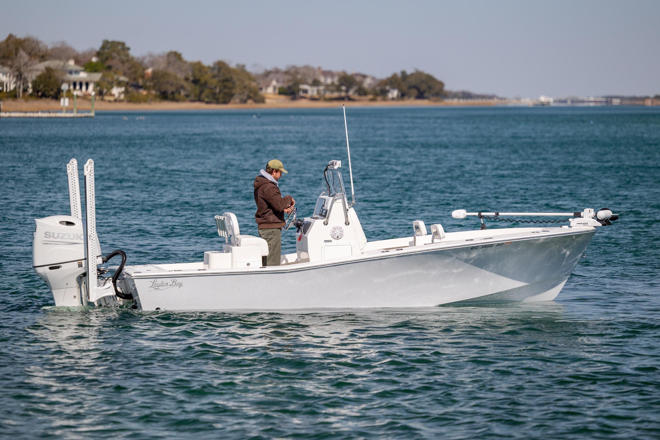 This 2024 Layton Bay 22 is a top of the line boat built up in Edenton, NC and is finished in Whisper Gray. This is a fishing machine that can handle the big water but also get skinny when you need it. It is powered by a 200hp Suzuki with digital controls. Also included in the sale is a 2024 Loadrite Tandem Axle trailer. She is loaded with features and ready to fish!