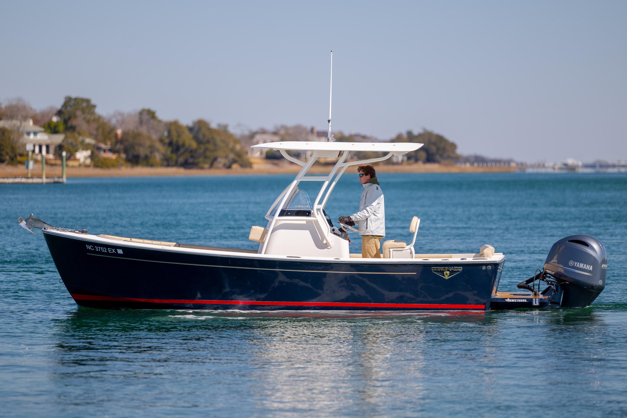 The Century Coronado 23 CC traces its roots to the Vanquish 23 Bristol Harbor, originally designed by Doug Zurn and later revived under the legendary Century Boats Coronado name. With classic New England lines, rich teak accents, lightweight modern construction, and 40 mph performance, it perfectly blends heritage elegance with contemporary capability.