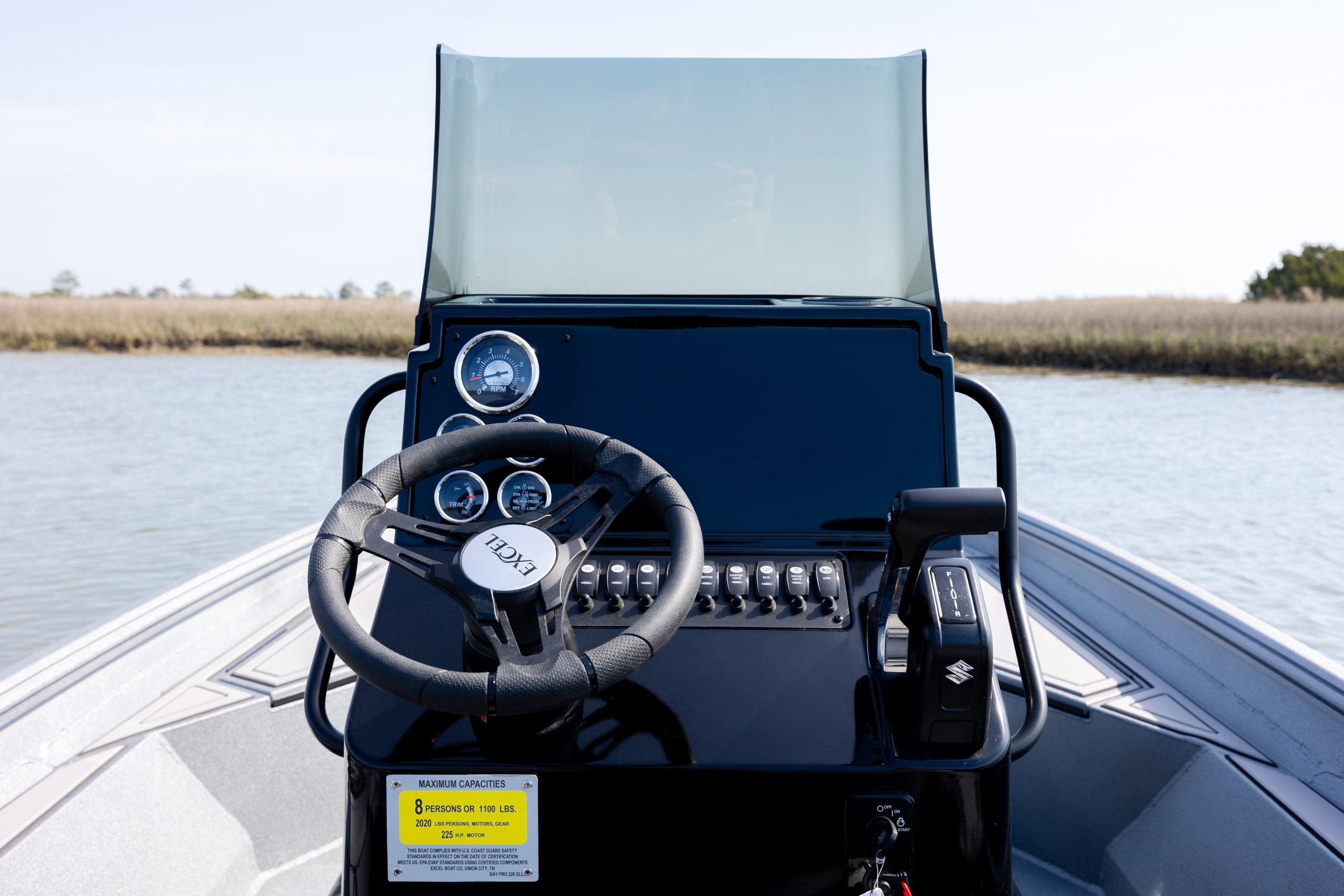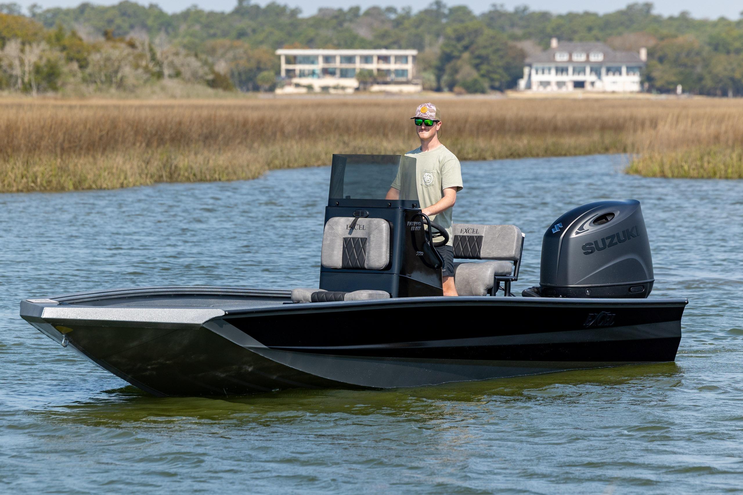 The 2026 Excel 220 Bay Pro Elite is a brand-new, versatile bay boat powered by a Suzuki DF200 and finished in a sleek black and gray hull. Equipped with Aqua Traction decking, console tackle storage, bow and stern fishing chairs, and a tandem axle EZ-Trac trailer, itβs a clean, ready-to-rig platform perfect for serious inshore anglers