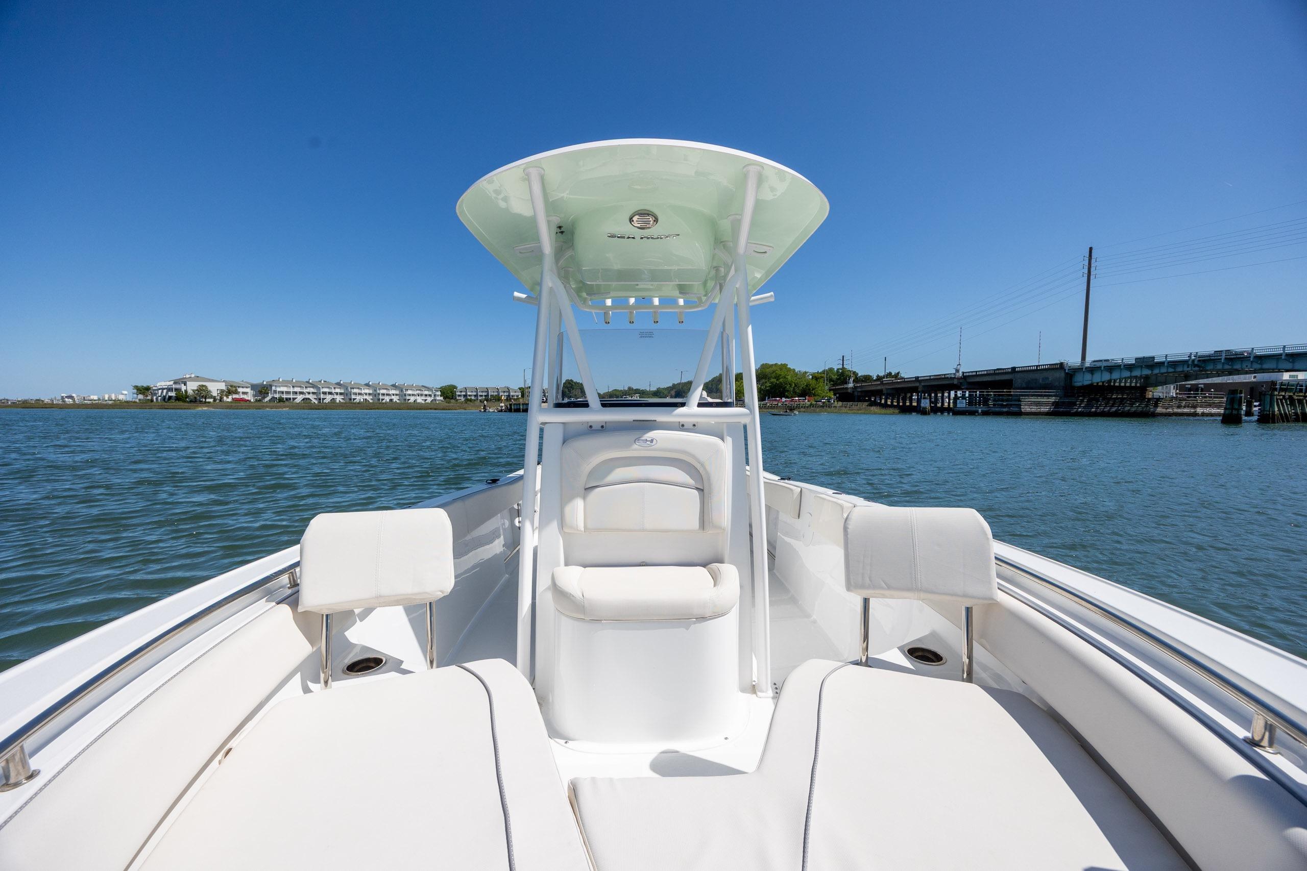 At the same time, rod holders, livewells, and smart deck layout make it equally capable for fishing. Sea Hunt’s reputation for building comfortable, functional center consoles shines through in this model—making it a great all-around choice for any type of day on the water.
