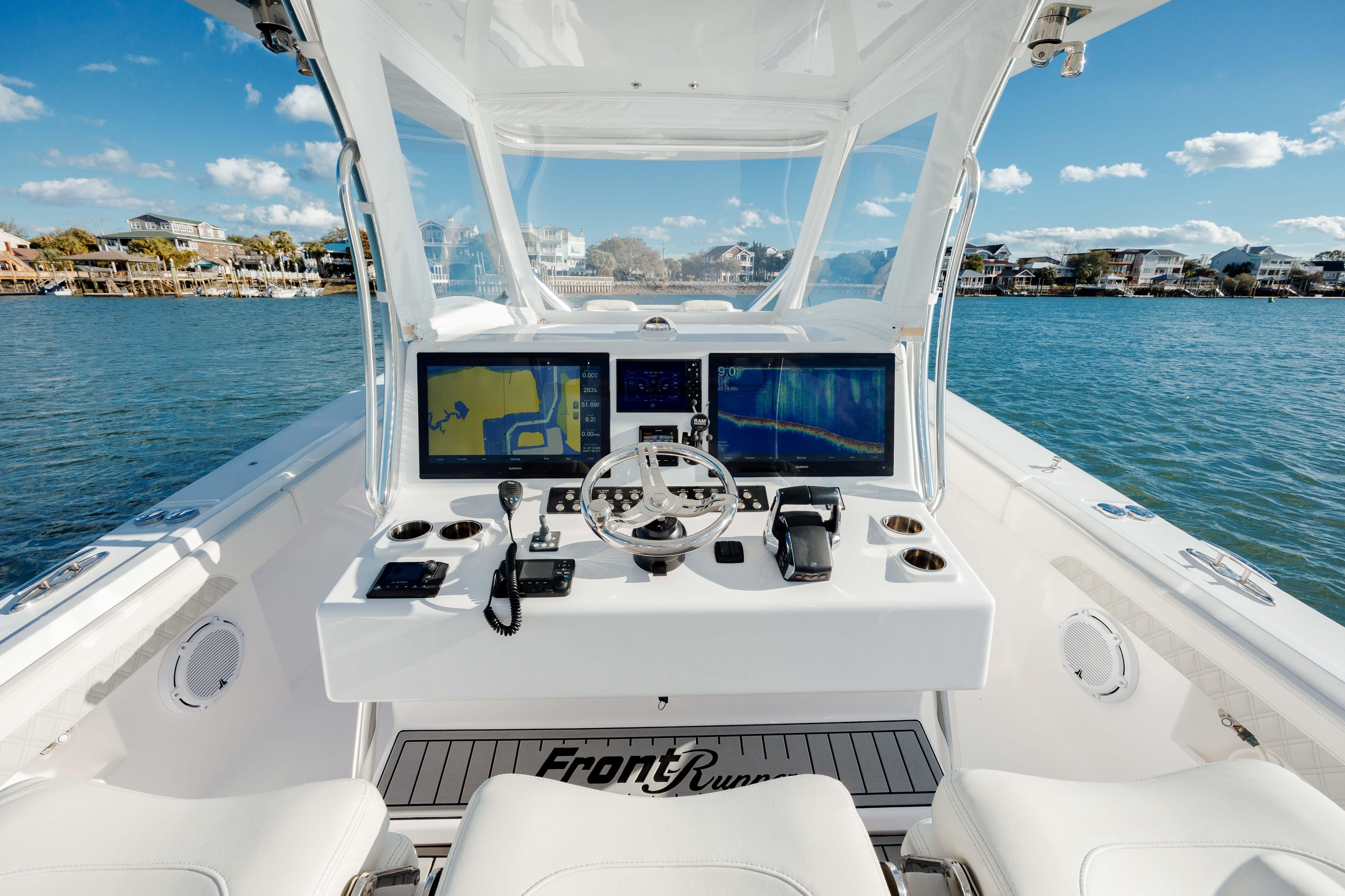 Built with classic styling, and modern innovation, the 39cc is a leader in her class. From the big bow flair to the high performance stepped bottom, the 39cc is sure to turn heads at the dock or while conquering rough seas. She also includes an enormous space down below to escape the elements. Whether you need to cool down at the sandbar or take a nap while drifting overnight for swordfish, the 39cc has you covered. The finest materials were used in her construction, and cutting edge design and engineering were used to make this boat perform and ride just like she is named, a true Front Runner.\xa0